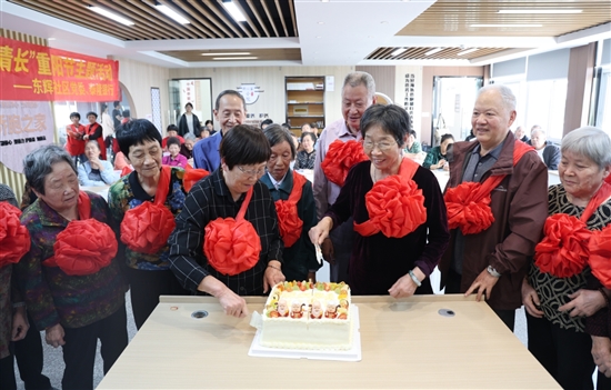 东辉社区为老年居民集体贺寿。