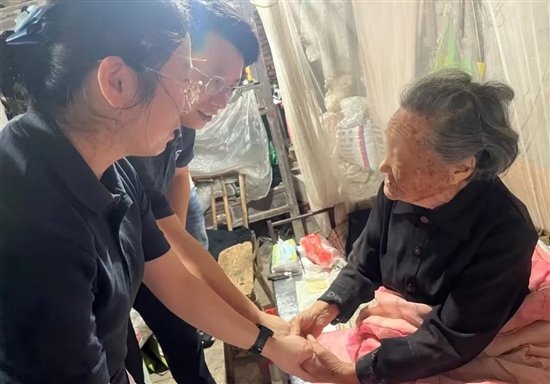当天,该院副院长沈祝苹带领“曙光行动”小组,踏上前往箬横镇的温暖之旅。“曙光行动”小组先探访了92岁高寿的夏婆婆。夏婆婆年事已高,因肋骨骨折在家卧床。肿瘤片区护士长陆雪青对夏婆婆的皮肤状况进行细致检查,确保其身体状况得到全面的关注。胸部放疗科主任陈明聪为老人审阅胸部CT检查结果,以专业的眼光评估其健康状况。在志愿者无微不至的关怀下,夏婆婆涌出感激的泪水,紧紧握住志愿者的手。