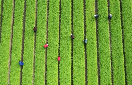 近日,温峤镇田野上的晚稻刚收割,农民就抢抓时间种植经济作物雪里蕻。近年来,该镇大力推广“稻菜轮作”种植模式,实现粮经双丰收,促进农业增效、农民增收。