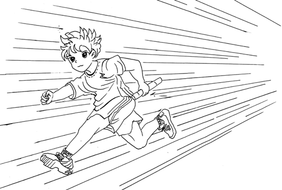 每次学校运动会,都是曾哥的高光时刻。200米的跑道上,他从来不会缺席。瞧,他双腿微曲蹲在起跑线上,神情专注地盯着前方,极像一只准备捕食的猎豹。“砰!”裁判一声令下,他犹如马达启动的飞车,瞬间消失在我们的视线中。那快速移动的步伐像是练过凌波微步,我们的眼神根本跟不上他飞奔的速度。不一会儿,他便把其他选手远远地甩在了身后。当他第一个冲过终点时,全场都为这位名副其实的“小飞侠”鼓掌欢呼,呐喊声响彻苍穹。