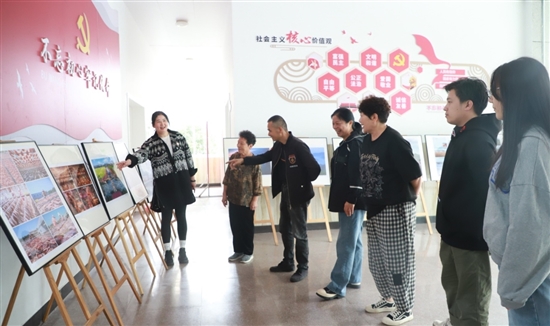 现场,王黎依次向大家介绍摄影作品,各年龄段的村民驻足欣赏,不时就摄影作品进行交流,还有人拿出手机,拍下喜欢的作品。