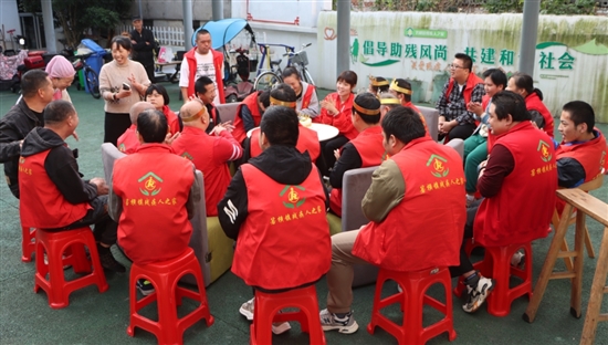 当天下午3时,7名在11月过生日的入驻残障人士及其家属如约从各个站点的“残疾人之家”来到活动地点。活动伊始,庆生者们被邀请走进“工疗”康复区,与在场的入驻残障人士一起制作电池盒、卡扣等简易手工组装件,大家在切磋技艺的同时彼此交流谈心。
