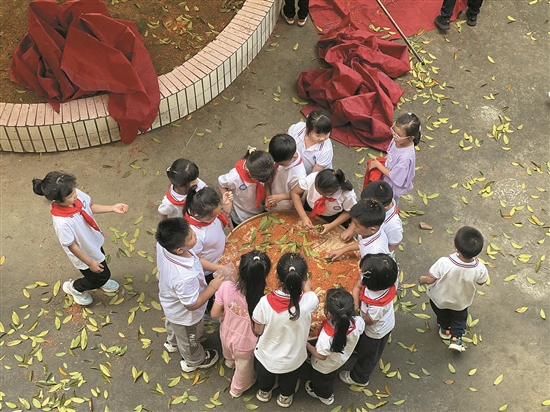 本报讯(通讯员叶宏涛文/图)秋风轻吟,金桂飘香。泽国第三小学的校园里,一场关于秋天的诗意教育——“秋韵课程”,正悄然开展。在这个丰收的季节里,学校以桂花为媒,精心策划了一系列丰富多彩的活动,不仅让孩子们的校园生活充满了诗意与画意,更在他们的心田播种下对大自然的热爱。