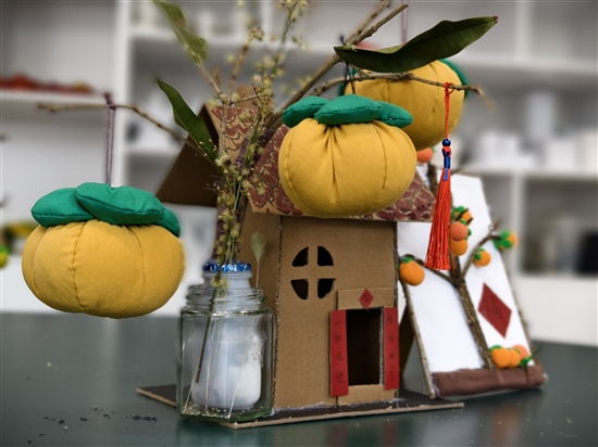 同学们还就地取材,借助彩泥、布料、纸板、树枝等物品,制作了一个个活灵活现、生动有趣的手工作品,让柿子增添了一份天真烂漫之感。