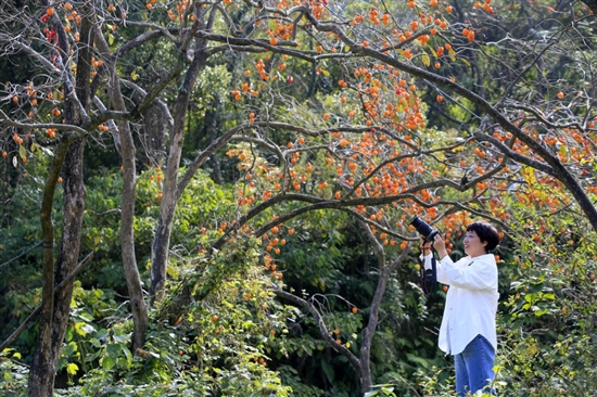 近日,一名摄影爱好者正在太平街道肖泉村拍摄柿子。