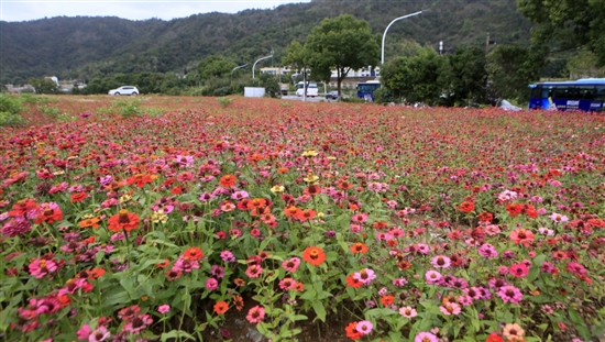 近日,在城南镇林岙村的搬迁空地上,五彩缤纷的百日菊尤为醒目。自湖漫库区生态搬迁工作开展以来,城南镇对辖区内部分搬迁区块闲置空地进行平整并播撒花种,进一步改善当地生态环境,提升城乡“颜值”。记者 周学军 通讯员 金云国 摄