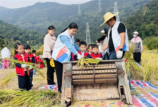 日前,大溪镇实验幼儿园开展“稻田小农人”农耕体验活动,组织孩子们来到太湖旁的稻田里,在种植户的示范下收割稻谷,亲身体会秋收。