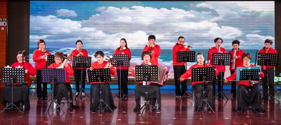 太平街道西园社区器乐合奏节目《红歌四连奏》。