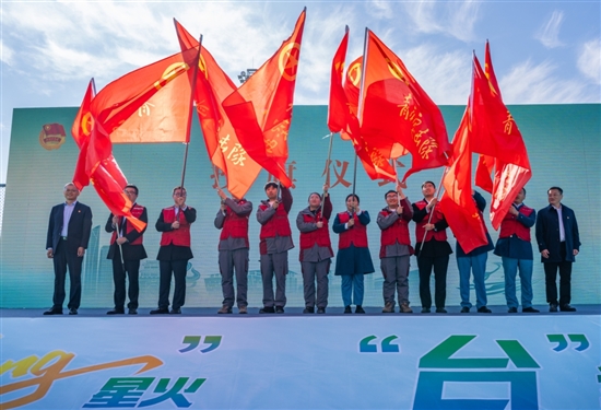 会上,台州畅行轨道还与多所台州高校签订了校企志愿服务共建协议书,并为公司的青年突击队、青年宣讲队、“风行”融媒体队授旗。