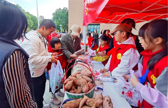 当天,学生们早早来到红领巾研学基地,分组进行辣椒、番薯、青菜等农产品的采收工作。随后,一筐筐新鲜出土的农产品被运送到市青少年宫的义卖现场。学生们迅速行动起来,绘制宣传海报、装饰爱心摊位、谋划销售策略,充分发挥自己的特长,为义卖活动贡献力量。