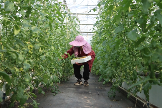 工人采摘“网红”小番茄。