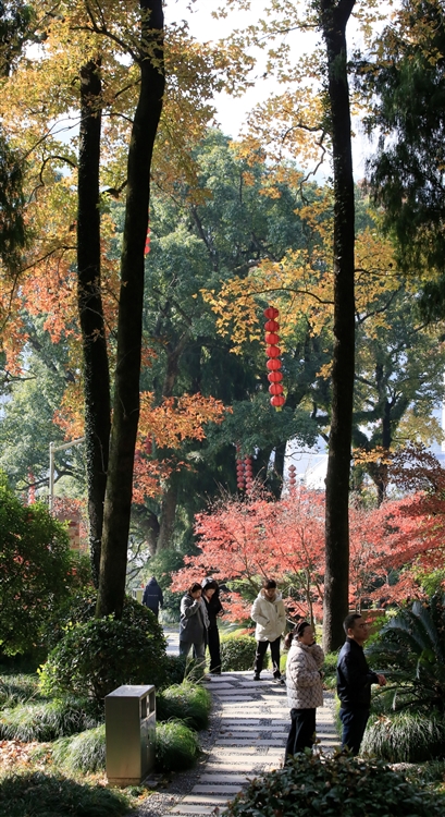 眼下,公园内50多株古枫香树、红枫的叶子正陆续变红,构成一幅色彩斑斓的冬日画卷,前来赏枫的游客络绎不绝。