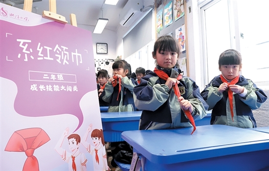 12月11日,松门小学一、二年级段开展系鞋带和系红领巾成长技能大闯关活动,这是该校“成长修炼手册”的其中两项。对于通过考核的学生,学校当场发放考核通过证书。