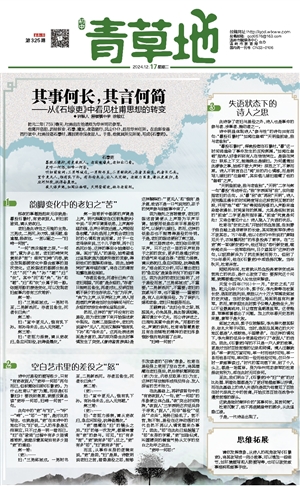 至此,我们明白了,《石壕吏》中“妇”“吏”的对比处理、明暗处理都是为了更好地借叙事以抒情,而在此基础上的诗人失语则是因为他看见了百姓在时代洪流之中的苦痛,开始反思百姓在战争中遭受苦难的源头。
