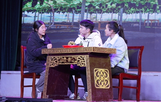 青年宣讲员在“村晚”舞台进行情景演绎。记者 王博 摄