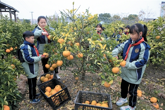 眼下,高桥小学“红领巾果园”里的高橙已经成熟,学生们正忙着采摘,体验劳动的快乐和丰收的喜悦。