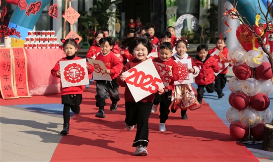 昨天,市中心幼儿园金润园区的孩子们以剪纸、舞龙、书画等形式,喜迎2025年的到来,表达对新年的美好祝愿和无限憧憬。