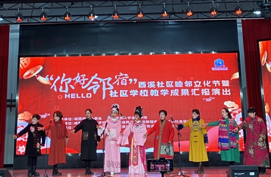 在越剧《洞房+送花楼会》节目中,参演者用婉转的唱腔和细腻的表演,呈现了独特的魅力和韵味,引发了台下观众的共鸣。作为参演者之一的居民林玉素,平时爱好听越剧却从未尝试过唱越剧,为了这次舞台演出机会,她排练了两三个月。“越剧课程非常热门,去年9月份课程一上线,我马上就报名了,能在家门口上课真的太方便了。”社区学校的开放与包容增进了邻里之间的感情,也丰富了居民的文化生活。