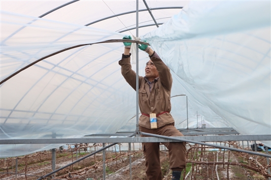 防御寒潮 为百亩葡萄园“穿衣裹被”
