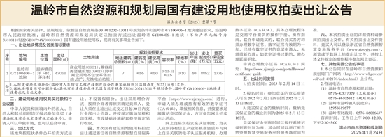 温岭市自然资源和规划局国有建设用地使用权拍卖出让公告