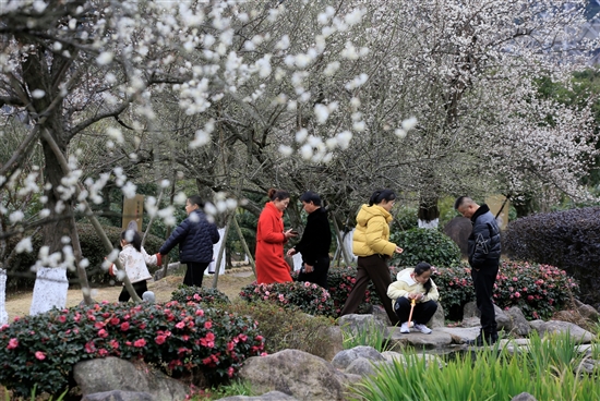 眼下,在温峤镇明因讲寺梅园,梅花悄然绽放,仿佛在迎接春天的到来,前来赏梅探春的游客络绎不绝。