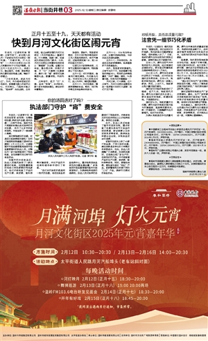本报讯(记者郑杭琳 黄健)元宵节到了,该去哪儿欢庆?不妨前往月河文化街区一探究竟。“月满河埠,灯火元宵”——月河文化街区2025年元宵嘉年华于今天拉开帷幕,自正月十五至正月十九,连续5日,融合国风、非遗、美食等多种元素的活动轮番上演,精彩不容错过。