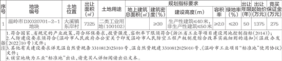 进入温岭市级工业项目库的企业方可参加该地块的国有建设用地使用权的挂牌出让。