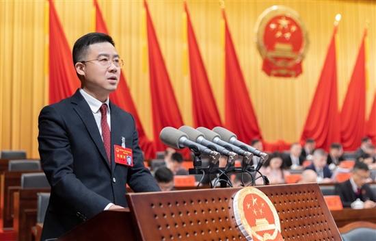 马厉财作政府工作报告。
