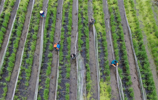 随着气温逐渐回升,在素有“茭白之乡”之称的新河镇,农户们纷纷投入田间春季管理之中,确保茭白苗茁壮成长,为早季茭白丰收奠定基础。图为2月25日,新河镇郑洋新村,农户们正在给茭白苗开棚。