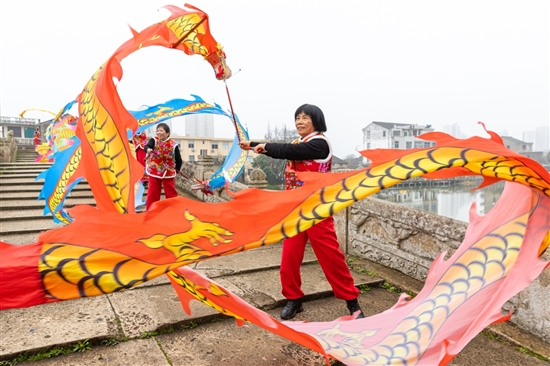 老年舞龙队同样充满活力。59岁的何桂云是健身龙团队的领队,舞动没多久,她便脸色红润,沁出了汗珠。“‘二月二,龙抬头’,我们舞龙不仅锻炼了身体,还寓意美好,希望大家都健康平安。”何桂云说,队中姐妹年龄多在50岁以上,最年长的已75岁。每逢春节、元宵节等传统节日,她们都会组队表演,为节日增添喜庆气氛。