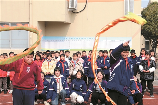 塘下小学的课间15分钟,同学们在体验舞龙活动,让传统文化实实在在地融入校园。通讯员 郭瑜梦