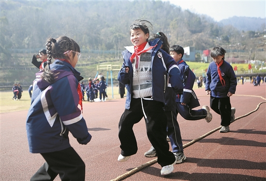 在箬横二小,课间活动引入传统游戏,如跳绳、踢毽子、丢沙包、跳皮筋等。学校还制定了“游戏小达人”赛事机制,并打造了展示长廊,让每份童真笑颜都成为校园文化的印记。