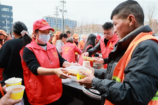 本报讯(通讯员梁伟伟文/图)3月4日,城北街道团工委联合组织、宣传、社工等办线开展“学习雷锋之待用公益”活动,将“待用快餐”送至环卫站、快递站,让城市美容师和快递小哥感受到“他乡即故乡”的温暖。