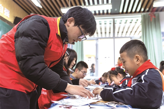 本报讯(记者叶琳 通讯员柳杨/文 记者徐伟杰/图)3月5日下午,国网温岭市供电公司团委的青年志愿者们走进市特殊教育学校,开展“春‘锋’送暖,志愿同行”雷锋日主题活动。