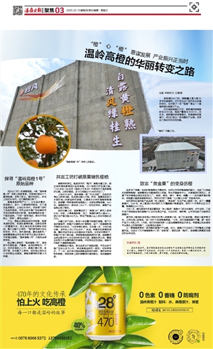 作为温岭高橙主产区,城南镇的种植面积有2000亩,每亩产量高达5000斤。近年来,城南镇创新销售模式,将高橙制成高橙汁,成功打造出一条完整的产业链,还带动了周边村民共同致富。