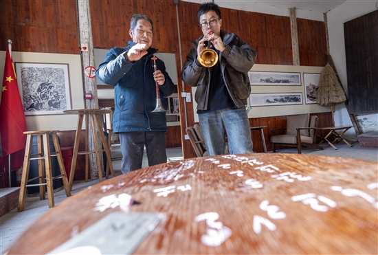 陈冬生正一句一句地教陈文杰吹唢呐。