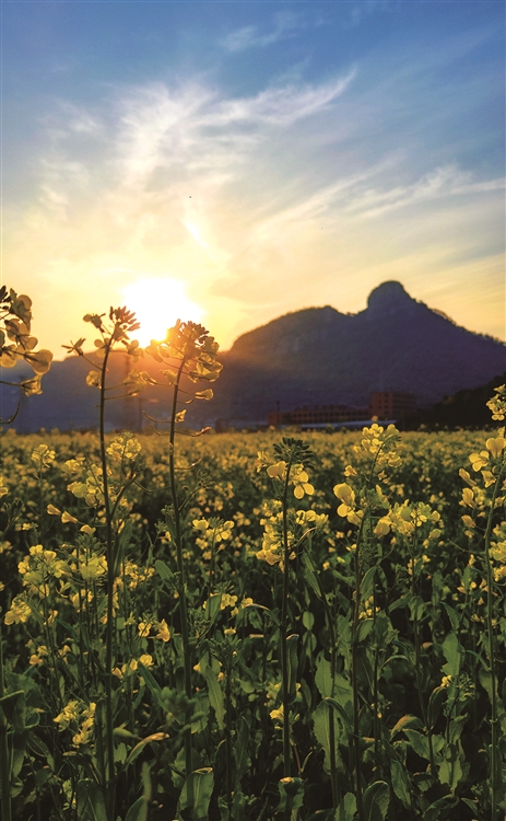 大溪镇南嵩岩村,油菜花在春天里绽放,形成一片片金黄色的海洋,成为大自然赐予的视觉盛宴。