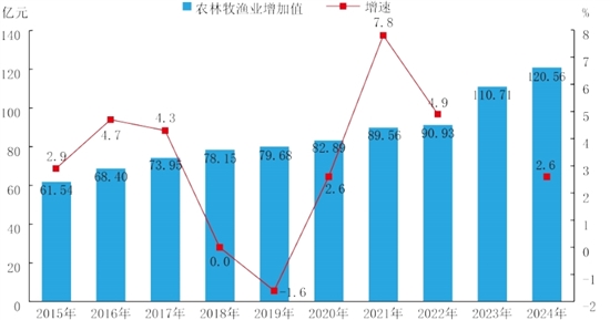图三:2015—2024年农林牧渔业增加值及增长速度