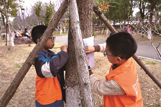 植树现场,家长和孩子们挥锹铲土、栽种树苗、提水浇灌,分工合作、默契配合。随后,孩子们将写满愿望的便签挂到亲手栽种的山茶树上,稚嫩的脸上洋溢着满满的成就感。
