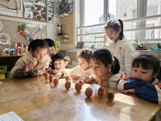 “老师快看!鸡蛋真的可以站起来呀!”春分日,方城幼儿园的孩子们变身“节气小博士”,在传统立蛋游戏中展开科学探索。历经数十次尝试,圆滚滚的鸡蛋终在桌面稳稳立起,欢呼声瞬间点亮教室。大一班张老师介绍:“这看似简单的习俗实则暗含重心与平衡原理,孩子们在游戏中自然建立起科学思维。”