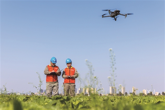 当天,工作人员还对周边农田灌溉设施及线路开展巡视,并利用无人机对春灌重点线路进行高空巡视,“人机双巡”全力保障农业用电。