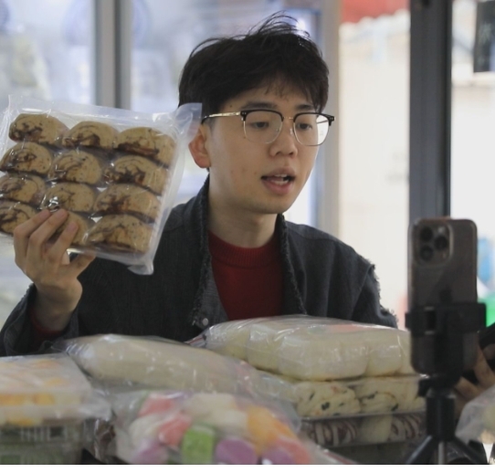 “29号是肉松卷,待会儿会开的。是的,我们是到店核销的哦。波波卷和南瓜山药可以直接拍,蜂蜜小面包的话,大家要等周末哦……”这位坐在各式“花样馒头”中的小哥名叫李杰。直播时,他语速很快,但声音温柔,方言、普通话相结合的直播方式让人感觉非常亲切。原先只是回家帮忙的他,用一年时间把馒头店玩出了新花样。