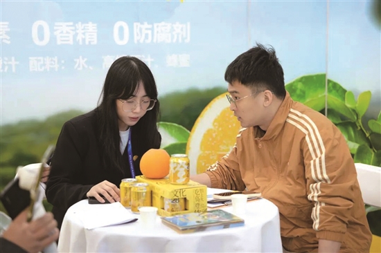 现场还发生了一段温馨的小插曲。一位西南交通大学的研究生在展位前停留许久:“我的导师之前转发过温岭发布的文章,专门提到高橙汁的历史和助农模式,没想到今天我能亲身体验!”她掏出手机展示导师分享的链接,并感叹:“能把地方特产和文化结合得这么巧妙,而且很有意义。”