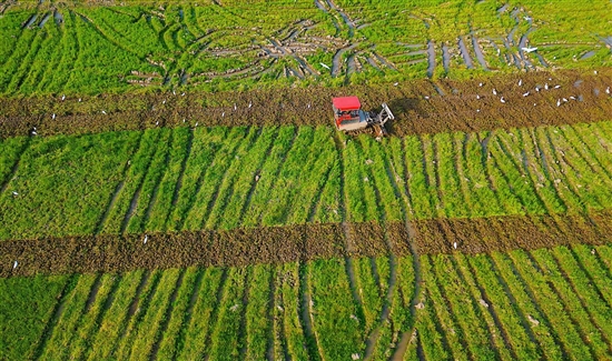 正值春耕生产好时节。坞根镇新方村的田间拖拉机轰隆隆地耕耘,白鹭漫天飞舞,春耕的田野,是希望的摇篮。