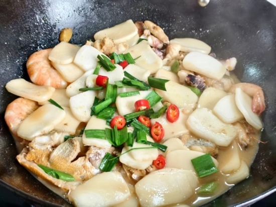 鲳鱼糕,入口绵密滑嫩,鱼鲜浓郁回甘,似海浪轻抚舌尖。外层微煎至金黄焦脆,内里柔若云絮。