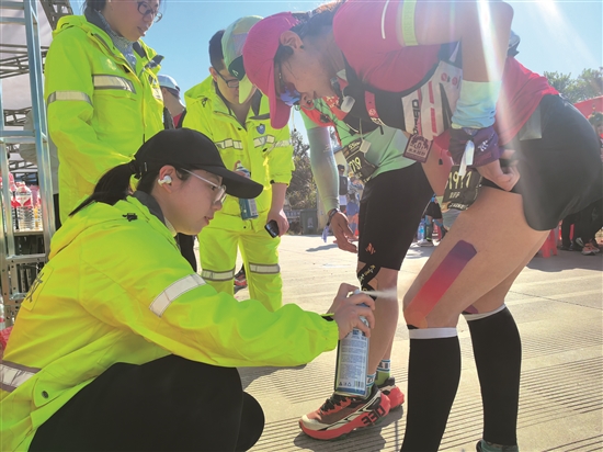 今年的温岭黄金海岸跑山赛,吸引了4500余名跑者参加。在这场充满速度与激情的赛事背后,市卫健局抽调80余名急诊、骨科、心内科医生,组建专业医疗救护团队开展全程护航,用20小时的坚守交出“零事故”的完美答卷。比赛时,医护人员化身“移动急救站”,累计处理外伤、失温、肌肉痉挛等伤员100余人次。