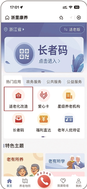 在“浙里康养”,点击“适老化改造”,即可申请。
