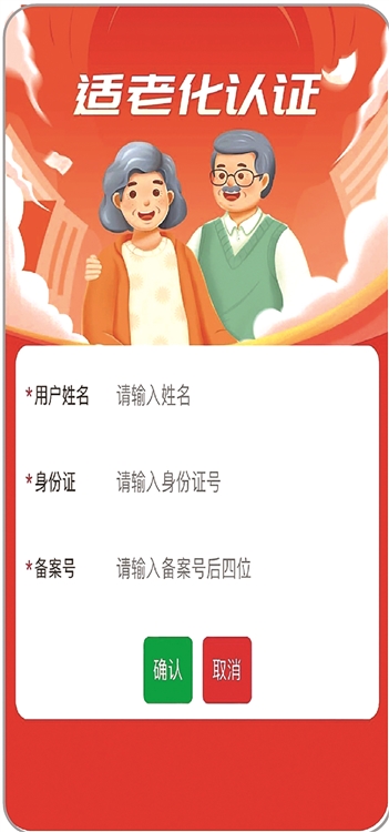 在“适老化认证”页面,输入老人相关信息即可登录。
