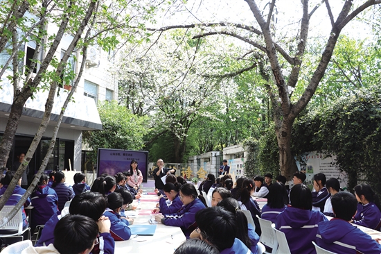 近日,市党外知识分子联谊会教育分会联合市教育朗诵协会,在市三中举行“山海诗教·樱花诗会”,将课堂搬至樱花树下,让学生们共赏春色、共赋诗篇。活动中,学生们分组抽词,创作拼贴诗,并在明信片上写下对春日的私语。最后,学生们深情朗诵原创诗歌,在春色中捕捉诗意,感受文学的魅力。