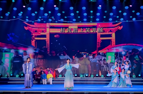 谢法标和新河文艺轻骑兵在省级“村晚”舞台表演。